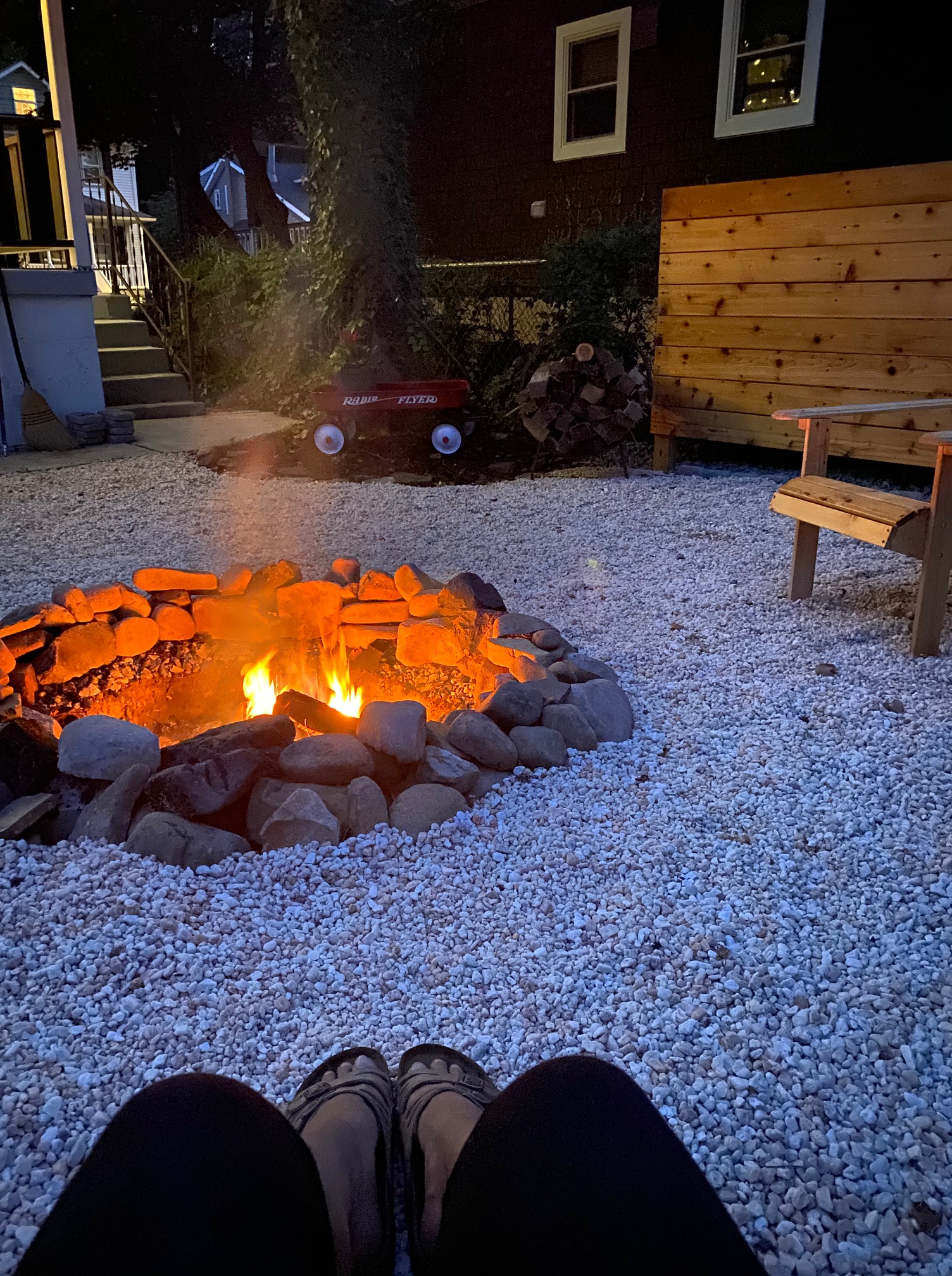 After jumpstarting home projects with the kitchen overhaul, we started thinking about the yard as well. Around the time of the commencement of the kitchen project, the weather was starting to get a bit warmer and we were dying to get outside. The first thing we did was make a little fire pit. We enjoyed it so much, that we purchased a ton of wood for the season.