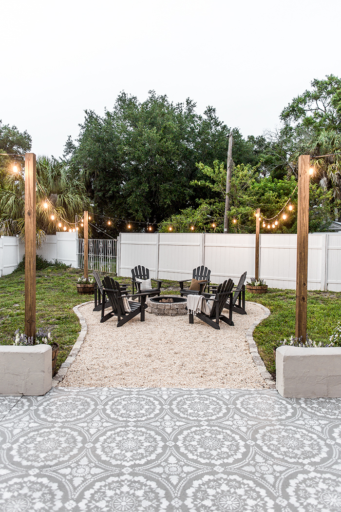 I came upon Jenna Sue’s design blog and fell in love with her backyard makeover. I talked with Brent and we both were inspired to see if we could do something similar in our backyard around the little fire pit we made.